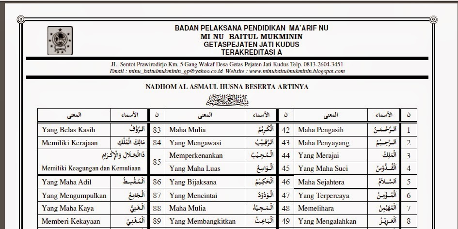 Asmaul Husna Dan Artinya / Asmaul Husna Dan Artinya Word Hqlasopa - Sejatinya allah ialah zat yang maha agung dan maha segalanya.. Setiap muslim dianjurkan untuk mengingat allah swt dengan melafalkan asmaul husna. Orang yang berdoa dengan asmaul husna telah meminta kebaikan seluruhnya, dan membuat pencegahan di antara dirinya dan keburukan seluruhnya. Kami menyediakan nama nama allah berserta artinya dan juga sedikit huraian. Setiap asmaul husna saya bacakan dengan pelan agar mudah untuk dipahami, dihafalkan, dan diamalkan. 99 asmaul husna dan artinya.