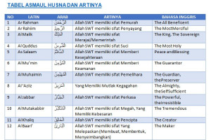 Asmaul husna (nama paling baik) berdasarkan bahasa ismi.